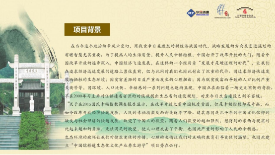 华众资源启动“中国儒释道生态文化产业养生游学度假区”前期筹划工作。成立项目筹划委员会,筹划委员会设立主任一名,由华众资源执行总裁马鹏韬担任。同时设立战略合作部、政策指挥部、金融风控部……等六个部门。