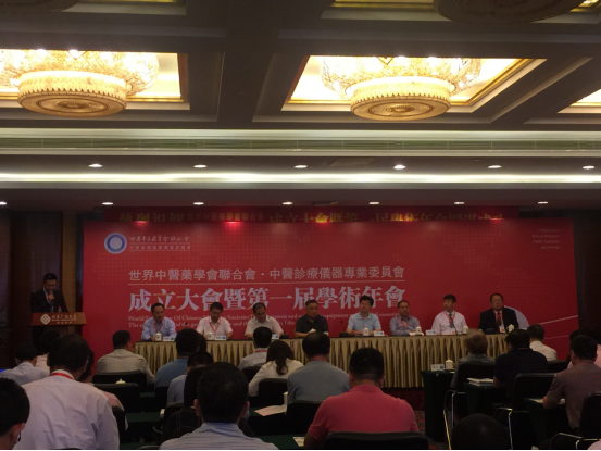 世界中医药学会联合会中医诊疗仪器专业委员会成立大会;主持人:潜能易合总经理、华众资源执行总裁马鹏韬;出席嘉宾有中国中医科学院院长张伯礼、国家中医药管理局政策法规与监督司副司长杨荣臣、国家中医药管理局科技处刘咏岷、世界中医药学会联合会副主席兼秘书长李振吉、天津中医药大学中医药工程学院院长教授陆小左等领导出席。