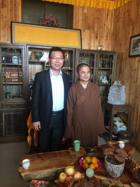 世界中医药学会联合会“中诊仪”副秘书长马鹏韬与陕西铜川大香山方丈隆道法师合影留念。